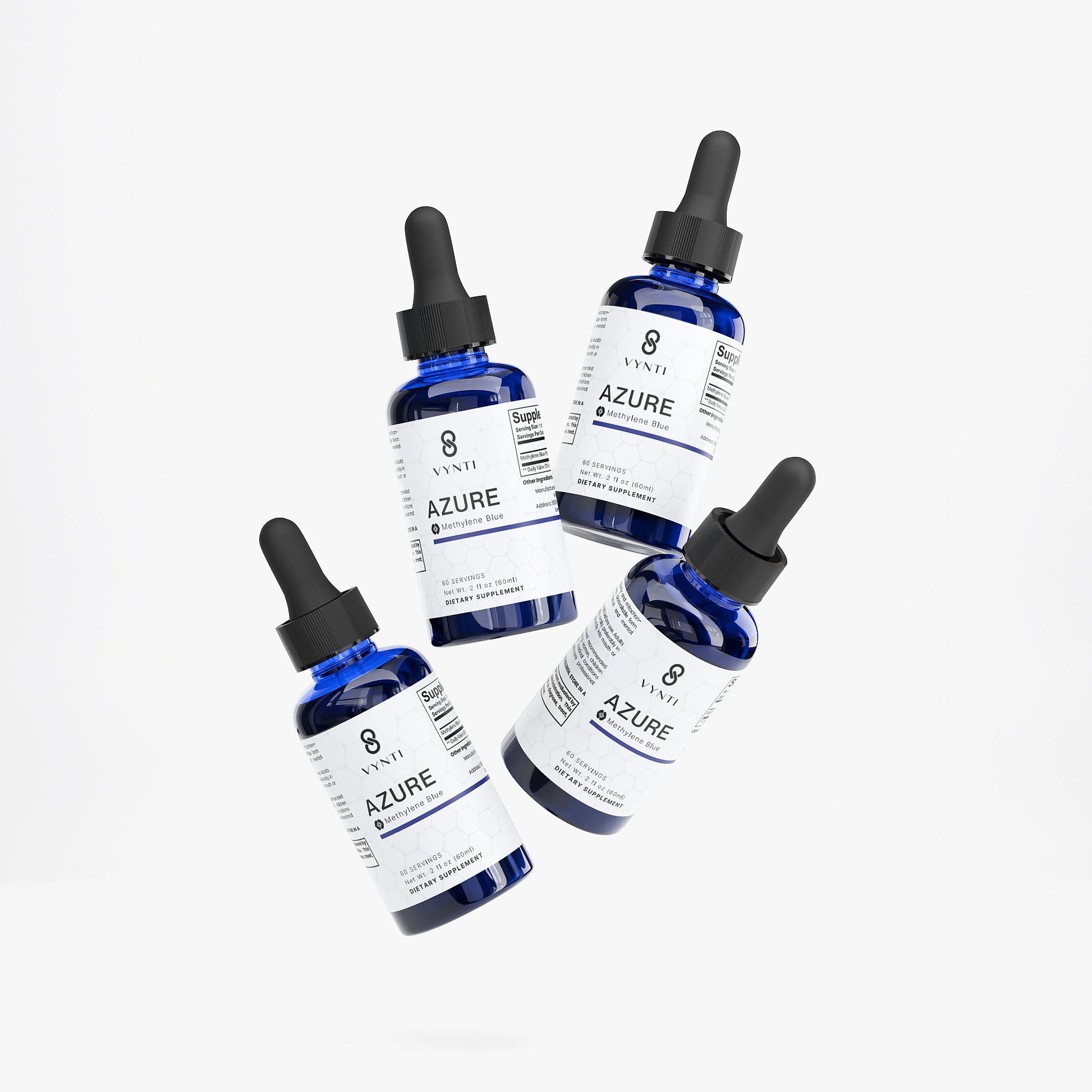 Unlike traditional stimulants that artificially spike adrenaline, AZURE works at the mitochondrial level. Methylene Blue is a premier electron donor - a compound that acts directly on the electron transport chain to improve cellular respiration and ATP production.